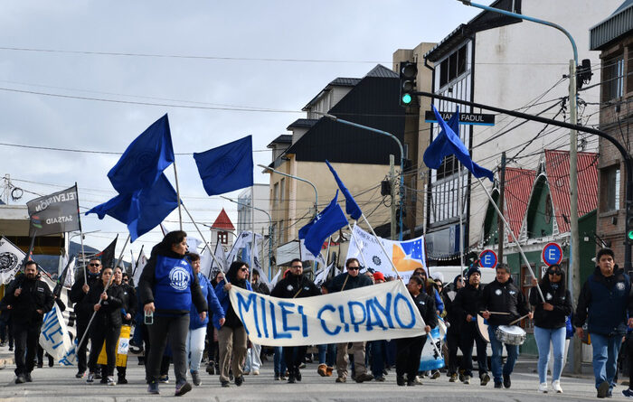 Diferentes sindicatos como a UOM e os metalúrgicos do Rio Grande – todos directamente prejudicados pelas políticas de corte do governo nacional – decidiram cortar a Avenida Maipu. Havia mais sinais que diziam “Milei persona no grata”, e outros que acrescentaram: “A soberania não é vendida, é defendida”.