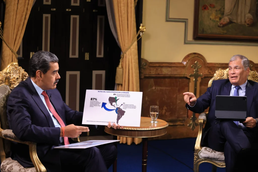 O presidente também se referiu ao caso colombiano, que classificou como um exemplo de uma “oligarquia narcotraficante” surgida após décadas de influência directa dos Estados Unidos por meio do Plano Colômbia. Em sua opinião, essa política não só falhou em conter o narcotráfico, como o consolidou como um fenómeno regional, afetando até mesmo países vizinhos como o Equador.